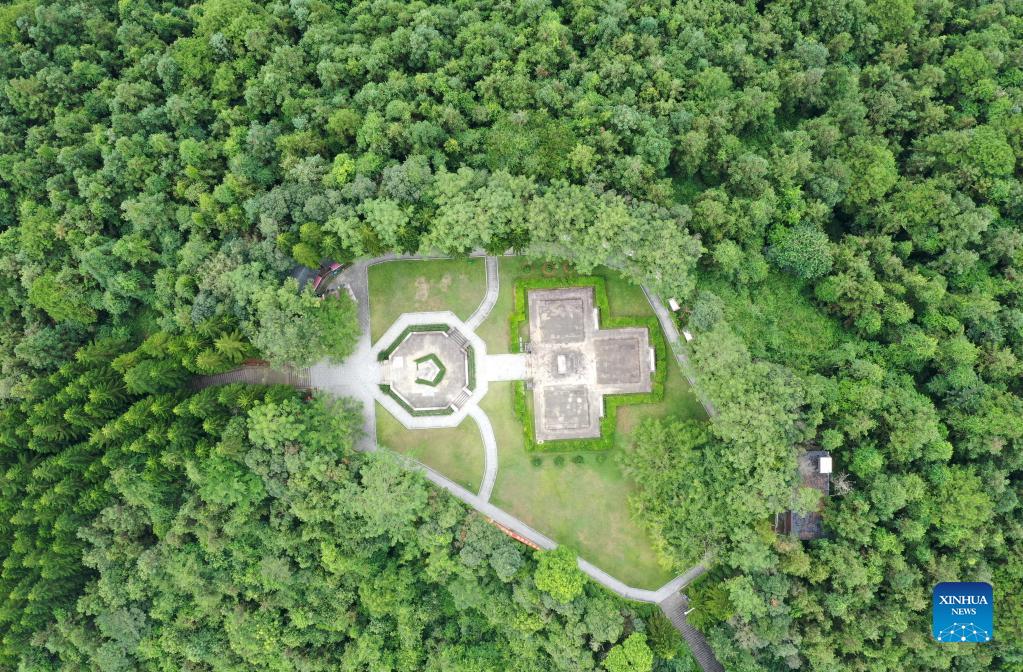 Aerial photo taken on Sept. 16, 2021 shows a war memorial of soldiers killed in the Kunlunguan Campaign, in Nanning, capital of south China's Guangxi Zhuang Autonomous Region. (Xinhua/Lu Boan)