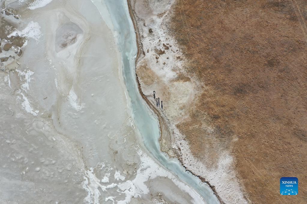 Aerial photo taken on Dec. 7, 2020 shows patrollers patrolling the conservation area of the Sonam Dargye Protection Station in Hoh Xil, northwest China's Qinghai Province. The Hoh Xil National Nature Reserve is home to various wild animals. In 2002, the Sonam Dargye Protection Station in Hoh Xil founded a wildlife rescue center in an effort to strengthen the protection of wild animals. Since its foundation, the center has saved, fed and medically treated more than 600 wild animals including over 50 Tibetan antelopes. Tibetan antelopes are mostly found in the Tibet Autonomous Region, Qinghai Province and the Xinjiang Uygur Autonomous Region. The species is under first-class state protection in China. Working as "babysitters" at an altitude of over 4,400 meters, patrollers of Hoh Xil shoulder the responsibility of rescuing and taking care of baby Tibetan antelopes. (Xinhua/Wang Yan)