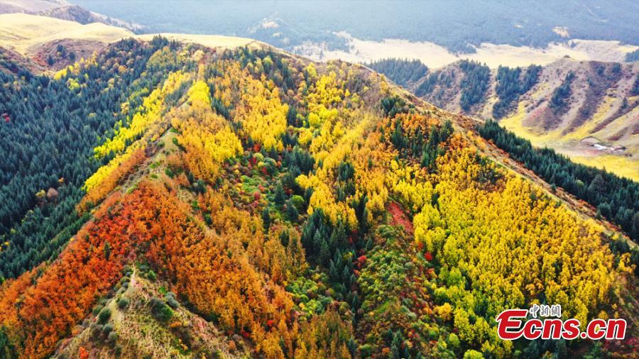 Colorful trees are seen at the Mati Temple Scenic Area in Gansu province. (Photo/Wu Xuefeng)