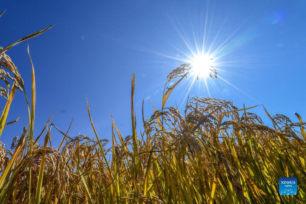Photo taken on Oct. 12, 2021 shows a rice field in Wanchang Town of Yongji County in Jilin City, northeast China's Jilin Province. (Xinhua/Zhang Nan)