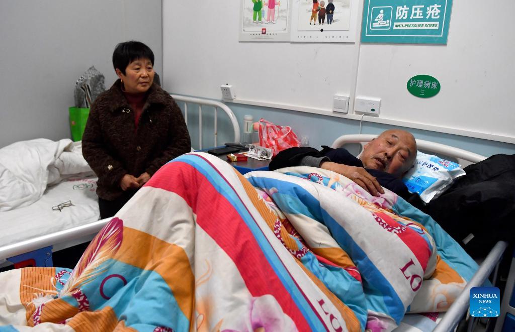 Residents stricken by the flood rest at a temporary relocation site in Dali County of Weinan City, northwest China's Shaanxi Province, Oct. 11, 2021. Nearly 240,000 people were affected by the floods due to continuous downpours in Dali County of Shaanxi Province. So far, more than 25,000 people have been evacuated to temporary relocation sites offering accommodation and medical services. (Xinhua/Liu Xiao)