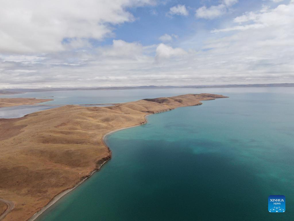 Aerial photo taken on May 25, 2021 shows a view of Ngoring Lake at the source of the Yellow River section of the Sanjiangyuan National Park in northwest China's Qinghai Province. Sanjiangyuan, meaning the "source of three rivers," is home to the headwaters of the Yangtze, Yellow and Lancang rivers. The ecological system has been steadily improving in recent years in the Sanjiangyuan National Park, making it a habitat of an increasing number of wild animals. (Xinhua/Li Zhanyi)