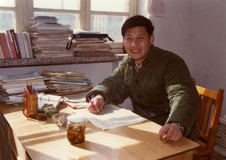 File photo taken in 1983 shows Xi Jinping in his office in Zhengding County, north China's Hebei Province. (Xinhua)