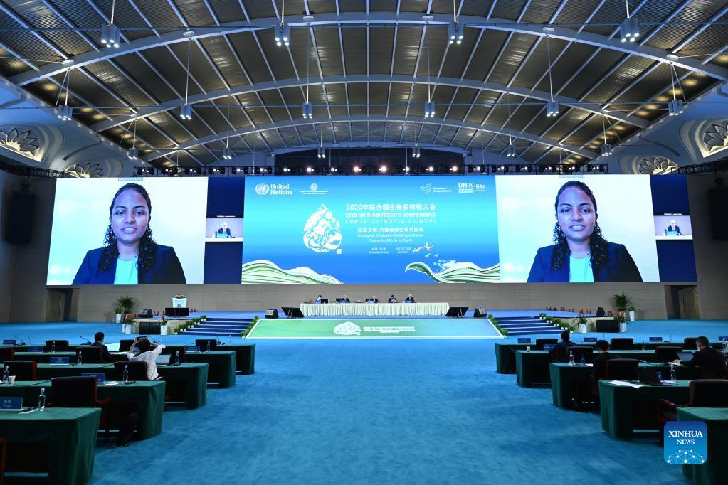A ministerial roundtable session of the High-Level Segment of the first part of the 15th meeting of the Conference of the Parties to the Convention on Biological Diversity (COP15) is held in Kunming, southwest China's Yunnan Province, Oct. 13, 2021. (Xinhua/Chen Yehua)
