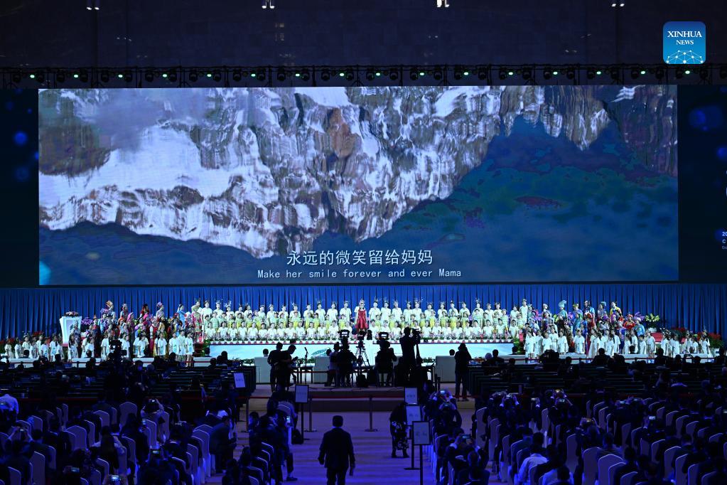 A performance is held at the opening ceremony of the Ecological Civilization Forum of the first part of the 15th meeting of the Conference of the Parties to the Convention on Biological Diversity (COP15) in Kunming, southwest China's Yunnan Province, on Oct. 14, 2021. (Xinhua/Chen Yehua)