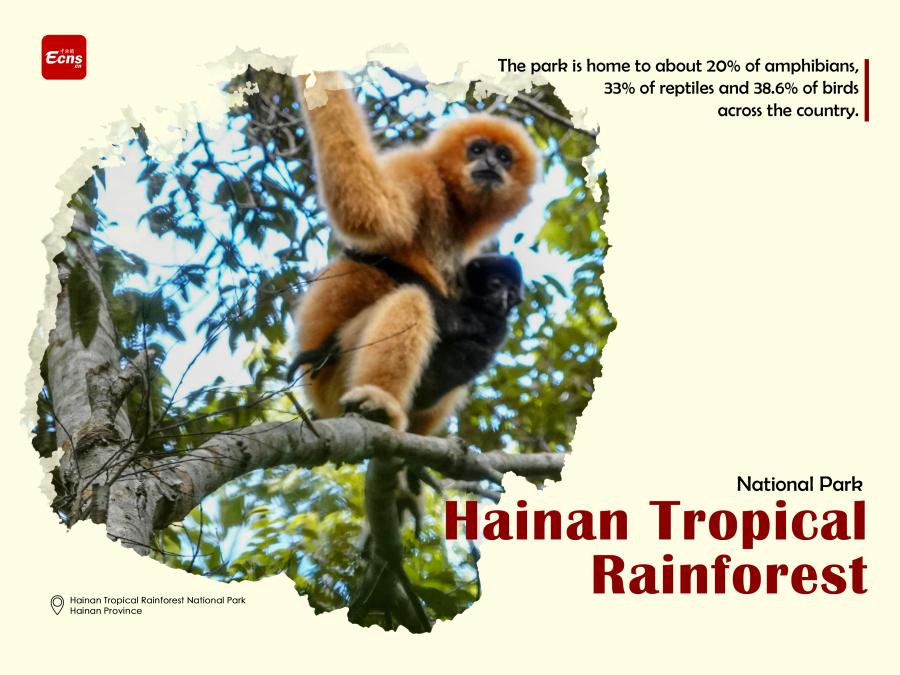 Hainan Tropical Rainforest National Park is home to about 20% of amphibians, 33% of reptiles and 38.6% of birds across the country.