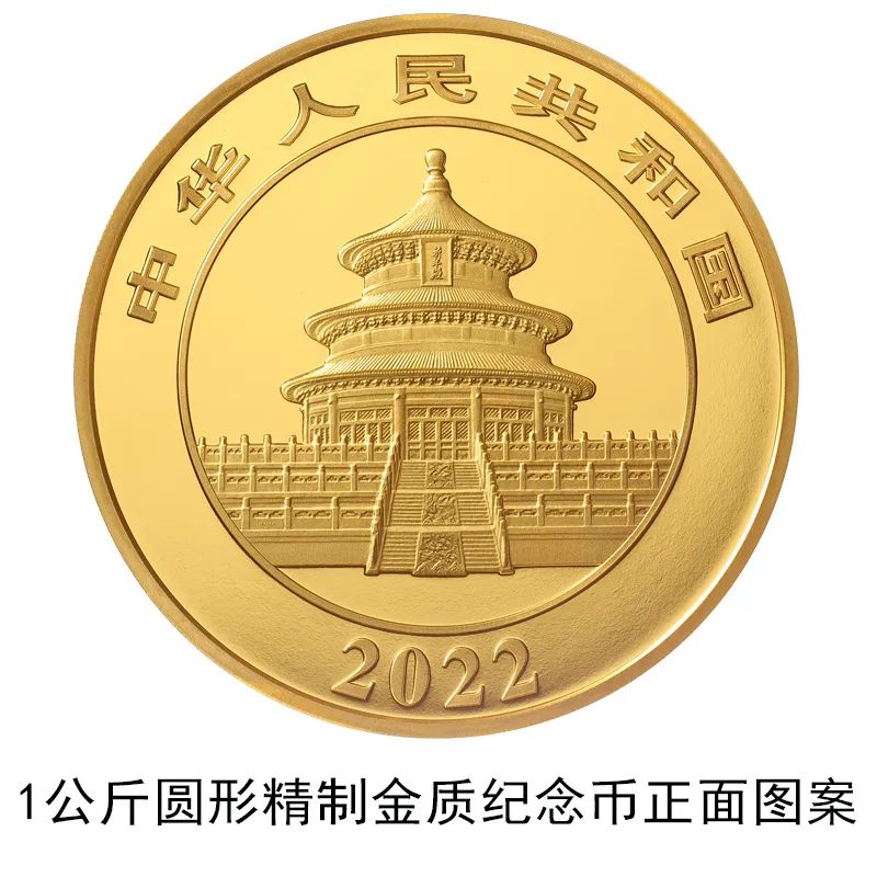 This photo shows the front side of a 1-kilogram panda commemorative gold coin. It has a face value of 10,000 yuan ($1553.8). A maximum of 1,000 will be issued.(Photo/pbc.gov.cn)