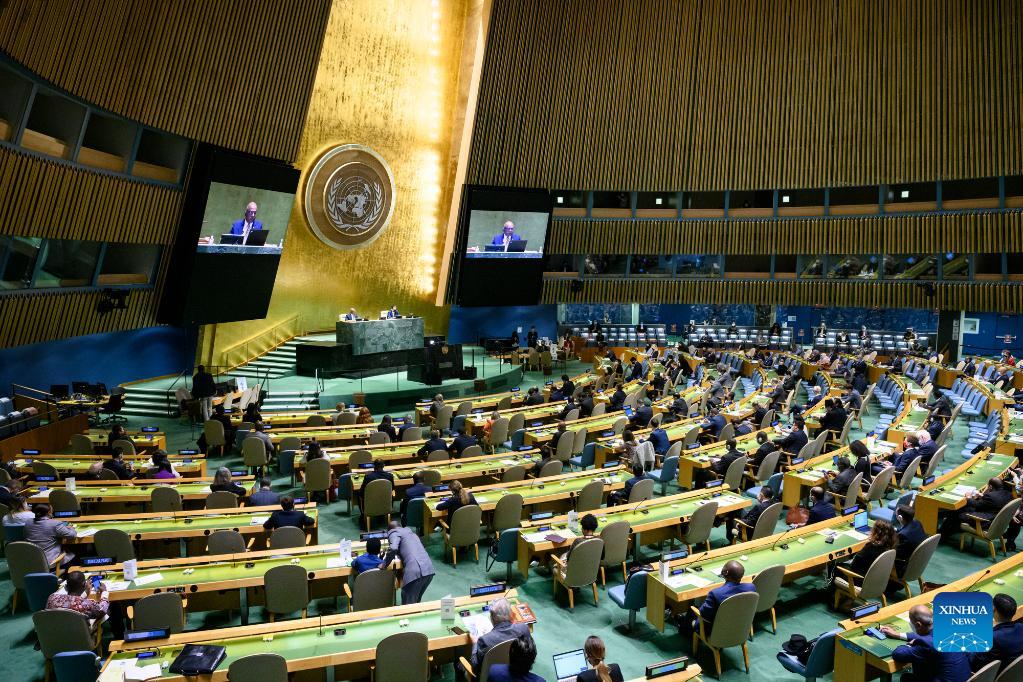 Photo taken on Oct. 14, 2021 shows a UN General Assembly meeting at the UN Headquarters in New York. The United States was on Thursday elected a member of the UN Human Rights Council, following its withdrawal in June 2018. In a vote at the UN General Assembly, the United States was elected along with 17 other countries for a three-year term beginning on Jan. 1, 2022. (Loey Felipe/UN Photo/Handout via Xinhua)