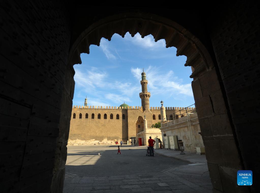 Tourists visit the Saladin Citadel in Cairo, Egypt, on Oct. 14, 2021. The Saladin Citadel, built by Saladin (1138-1193) in the 12th century, is an attraction for tourists in Cairo. (Xinhua/Sui Xiankai)