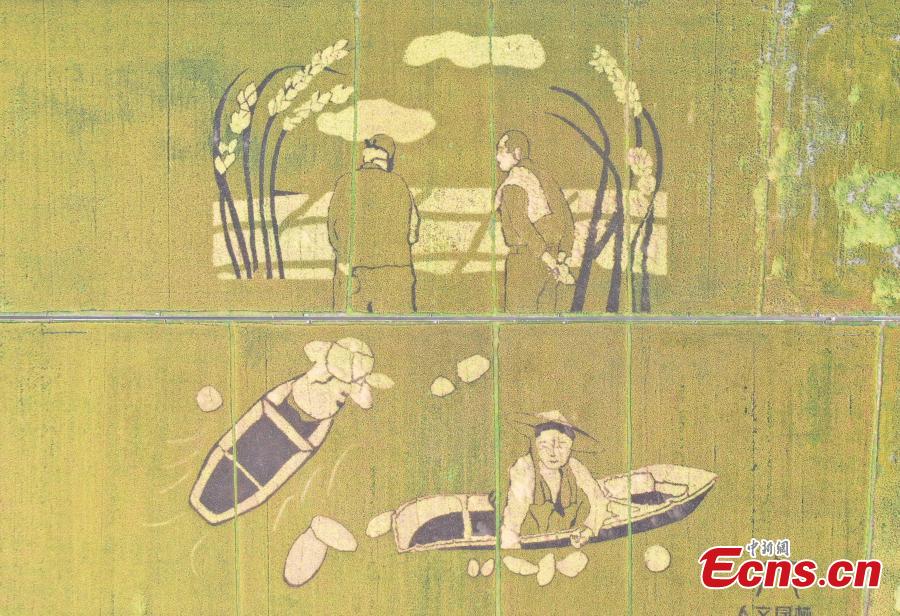 This photo taken on Oct. 14, 2021, shows rice paddy field paintings in Hangzhou, Zhejiang Province. (Photo: China News Service/Wang Gang)