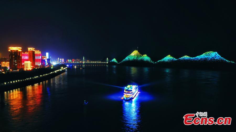 Colorful lights light up the night sky in Yichang, central China's Hubei Province. (Photo/Zhou Xingliang)