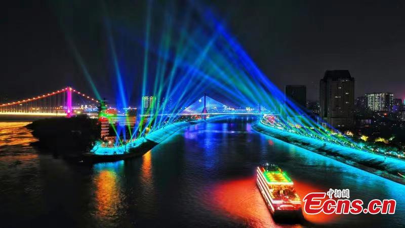 Colorful lights light up the night sky in Yichang, central China's Hubei Province. (Photo/Zhou Xingliang)
