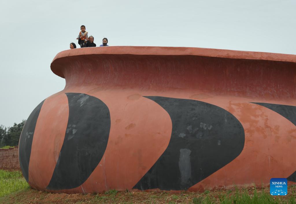 People visit the national archaeological site park of Yangshao Village in Mianchi County, central China's Henan Province, Oct. 15, 2021. In 1921, the first excavation on the Yangshao Village site, which is in Mianchi County, Henan Province, marked the birth of Chinese archaeology. The name of China's first-known archaeological culture, the Yangshao Culture, was also derived from the site. In 1951 and 1980, China launched the second and third excavation of the ruins. Originating around the middle reaches of the Yellow River, the Yangshao Culture is considered an important stream of Chinese civilization, and is widely known for its advanced pottery-making technology. The fourth archaeological excavation of the Yangshao Village site began on Aug. 22, 2020, and is still in progress. (Xinhua/Li An)