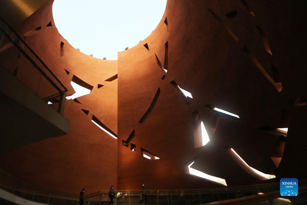 People visit Yangshao Culture museum in Mianchi County, central China's Henan Province, Oct. 17, 2021. In 1921, the first excavation on the Yangshao Village site, which is in Mianchi County, Henan Province, marked the birth of Chinese archaeology. The name of China's first-known archaeological culture, the Yangshao Culture, was also derived from the site. In 1951 and 1980, China launched the second and third excavation of the ruins. Originating around the middle reaches of the Yellow River, the Yangshao Culture is considered an important stream of Chinese civilization, and is widely known for its advanced pottery-making technology. The fourth archaeological excavation of the Yangshao Village site began on Aug. 22, 2020, and is still in progress. (Xinhua/Xu Yanan)
