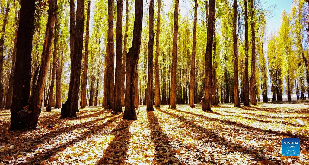 Photo taken with a mobile phone shows the autumn scenery in Lhunzhub County of Lhasa, southwest China's Tibet Autonomous Region, Oct. 16, 2021. (Xinhua/Shen Hongbing)
