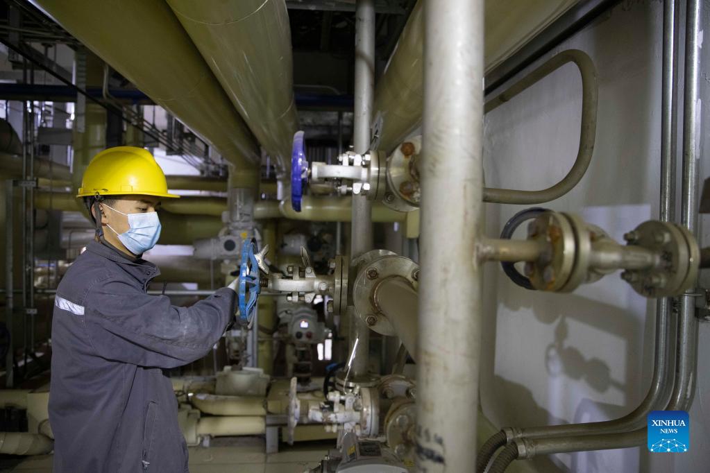 A staff member works at Harbin Chenneng biomass power plant in Harbin, northeast China's Heilongjiang Province, Oct. 18, 2021. Biomass power plants in Heilongjiang Province convert agricultural waste into biomass energy, which boosts sustainable, green agricultural development. (Xinhua/Zhang Tao)