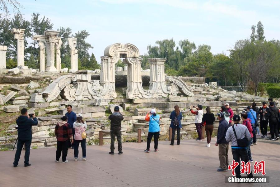 Tourists visit the Dashuifa Site at Yuanmingyuan Ruins Park, Oct. 18, 2021. (Photo: China News Service/Yi Haifei)