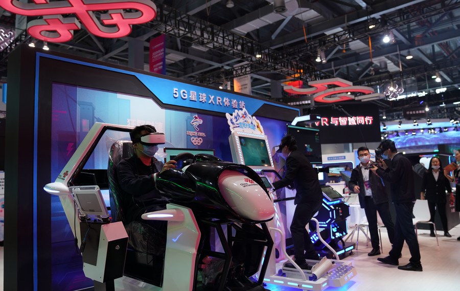 A visitor drives a VR motor at the 2020 World Conference in Nanchang, capital of east China's Jiangxi Province, Oct. 19, 2020. (Xinhua/Hu Chenhuan)