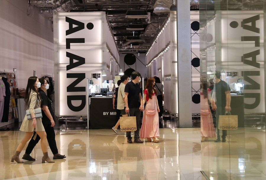People wearing face masks walk in a shopping mall in Hanam, South Korea, Sept. 24, 2021.(Xinhua/Wang Jingqiang)