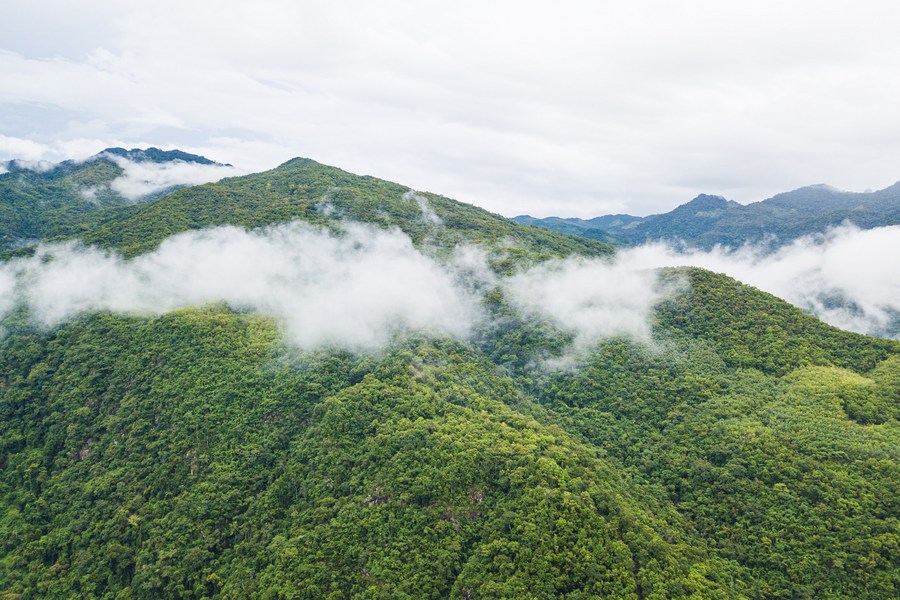 Aerial photo taken on Sept. 27, 2021 shows the view of the Hainan Tropical Rainforest National Park in south China's Hainan Province.(Xinhua/Pu Xiaoxu)