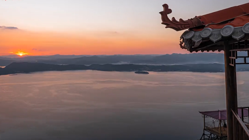 Fuxian Lake, located in southwest China's Yunnan Province, is the largest deep freshwater lake in China. At sunset, Fuxian Lake is bathed in an orange glow, with shallow ripples and reflections of rosy clouds, which is certainly an incredible sight to behold. (Photo/People's Daily Online)