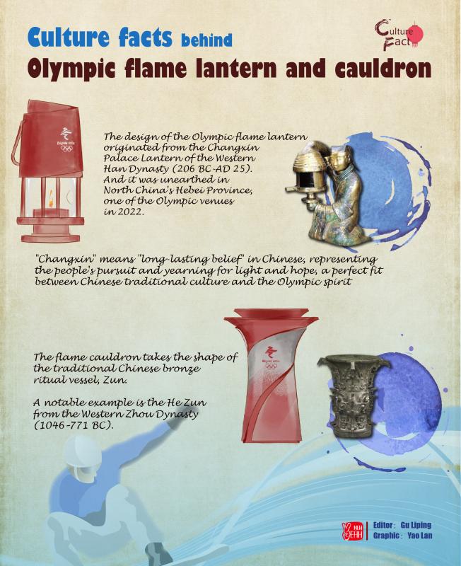 The design of the Olympic flame lantern originated from the Changxin Palace Lantern of the Western Han Dynasty (206 BC-AD 25). And it was unearthed in North China's Hebei Province, one of the Olympic venues in 2022.
