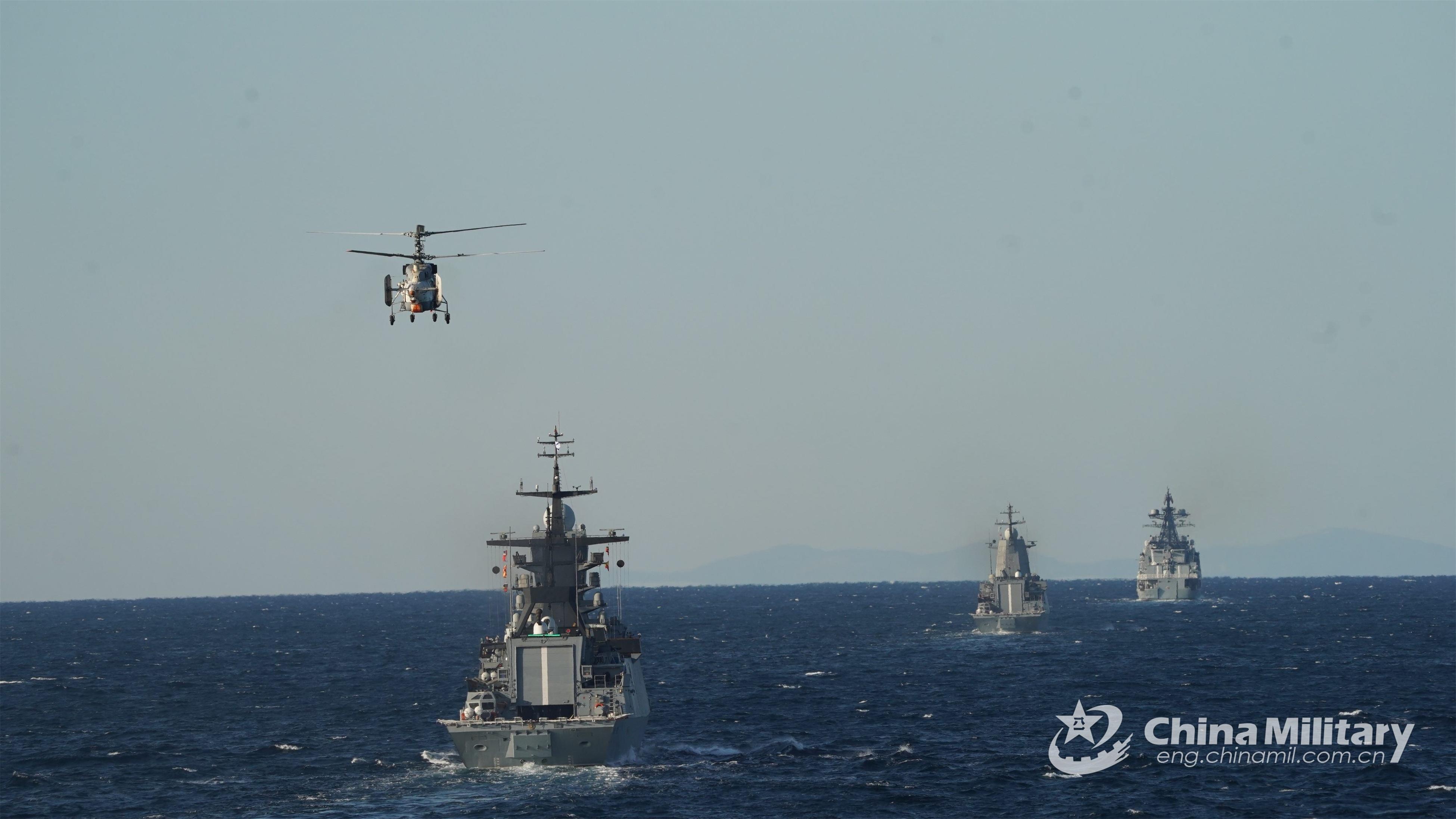 The Russian navy's ship-borne helicopter gets ready to land on the deck during the China-Russia joint naval exercise Joint Sea-2021 on Oct. 15, 2021. Being a normal arrangement made by the two navies according to the annual plan, the Joint Sea-2021 exercise kicked off on October 14 in waters near Russia's Peter the Great Bay. (eng.chinamil.com.cn/Photo by Sun Jingang)