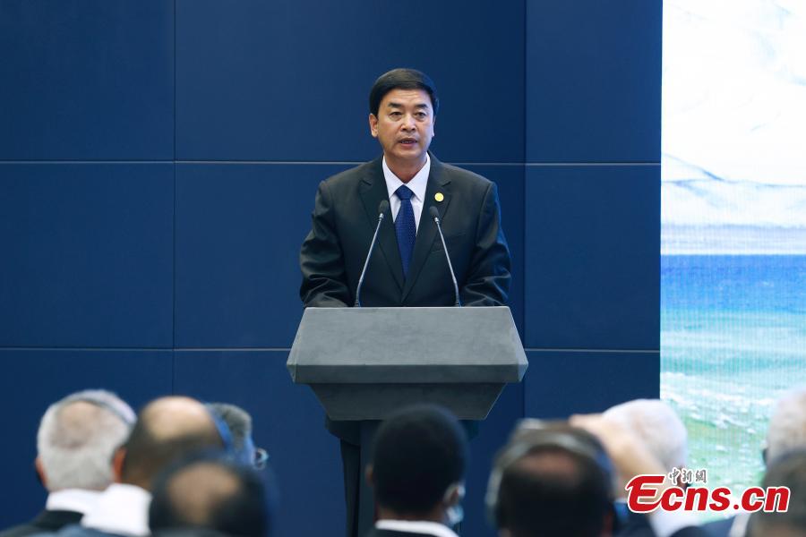 Yan Jinhai, acting chairman of the People's Government of the Tibet Autonomous Region, introduces Tibet to the world in Beijing, Oct. 20, 2021. (Photo: China News Service/Han Haidan)