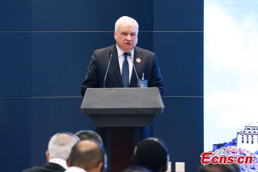Andrey Denisov, the Russian ambassador to China, delivers a speech at a foreign ministry event to introduce the Tibet Autonomous Region to the world in Beijing, Oct. 20, 2021. (Photo: China News Service/Han Haidan)