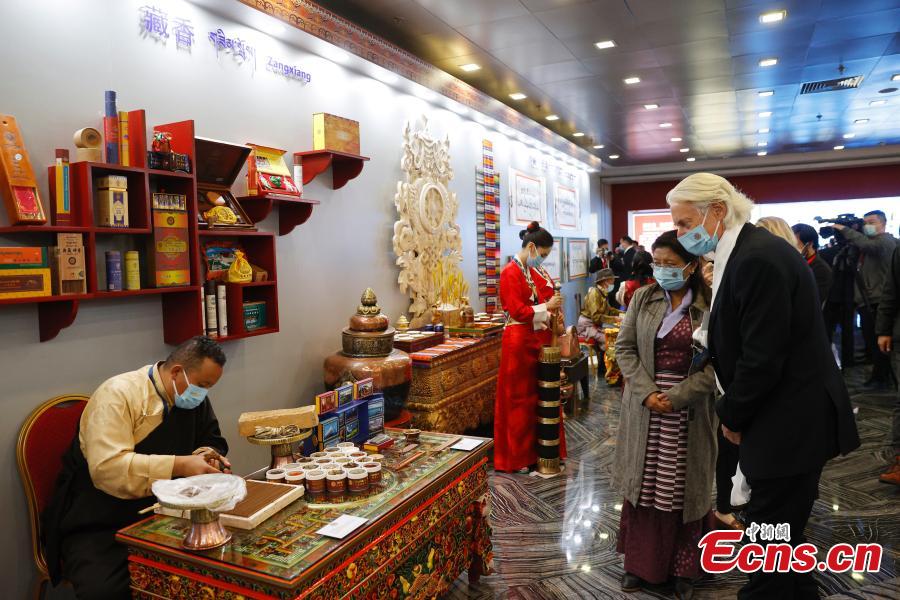 A craftsman makes Tibetan incense at a foreign ministry event to introduce the Tibet Autonomous Region to the world in Beijing, Oct. 20, 2021. (Photo: China News Service/Han Haidan)