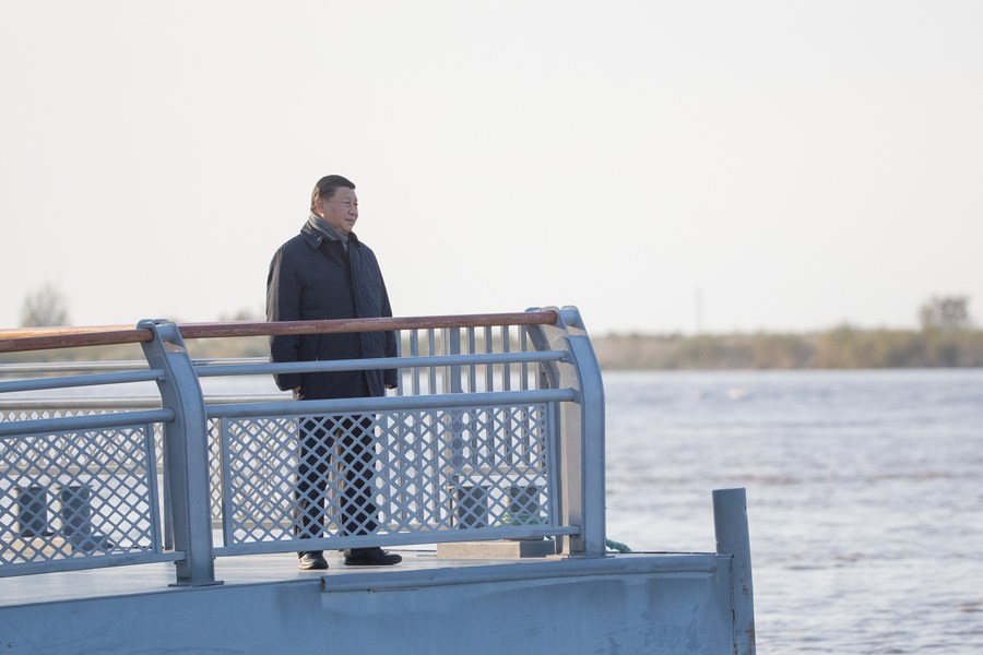 During the inspection tour, Xi visited a dock, an ecological monitoring center and a national-level nature reserve of the Yellow River Delta. He also checked the river's waterways, the ecological environment of the wetlands in the river delta, and learned about the ecological protection and high-quality development of the Yellow River basin.