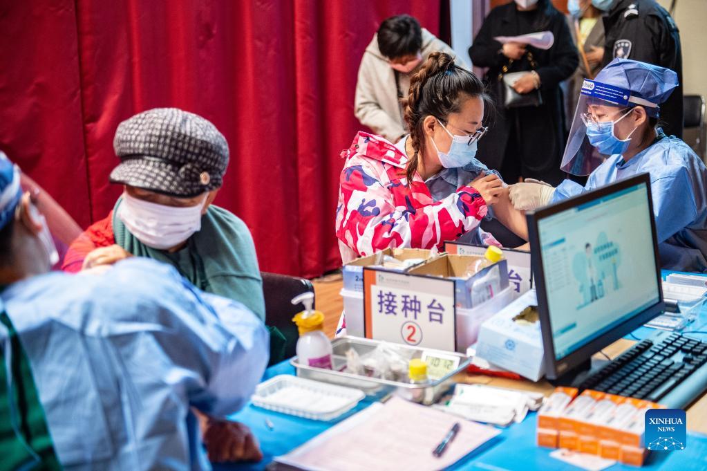 Residents get booster shots of the COVID-19 vaccine at a temporary vaccination site in Changping District of Beijing, capital of China, Oct. 23, 2021. (Xinhua/Chen Zhonghao)