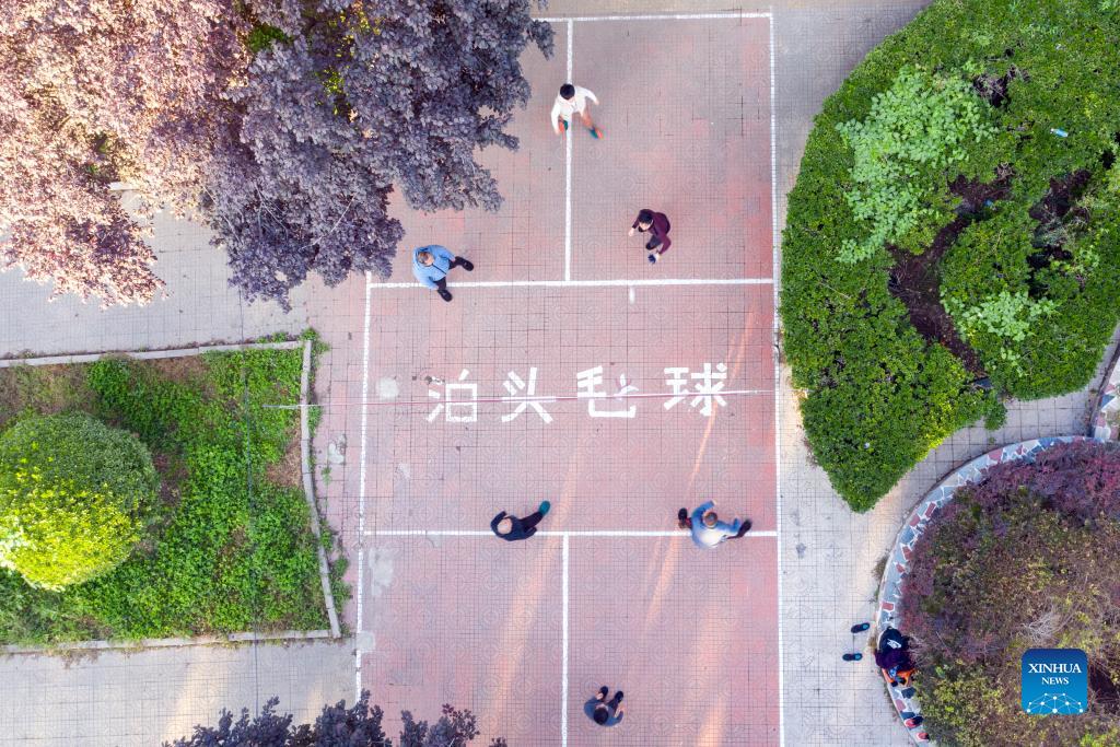 Citizens play shuttlecock in the Grand Canal landscape belt of Botou City, north China's Hebei Province, Oct. 23, 2021. In recent years, Botou city has focused on restoring the natural ecology of the Grand Canal and creating a beautiful and comfortable leisure space for the public. (Xinhua/Luo Xuefeng)