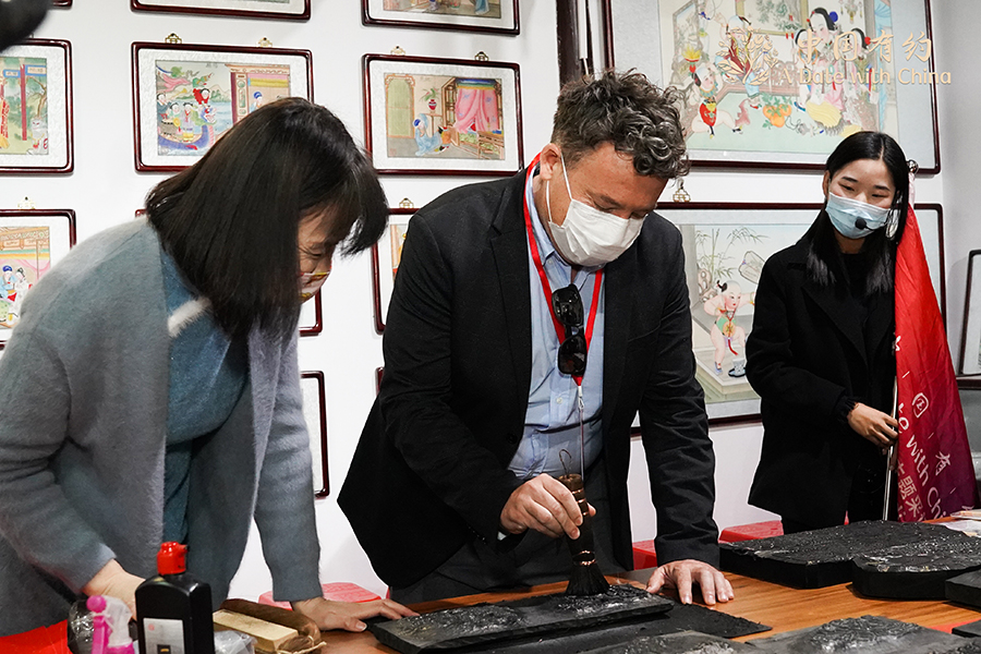 Foreign journalists and internet influencers experience traditional Chinese culture in North China's Tianjin on Oct 22, 2021. [Photo/chinadaily.com.cn]