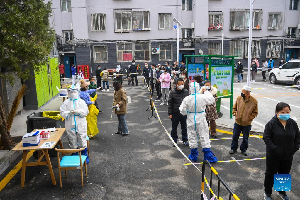 Residents queue up to take nucleic acid tests at a temporary nucleic acid testing site in Hohhot, north China's Inner Mongolia Autonomous Region, Oct. 24, 2021. To curb the spread of COVID-19, the city of Hohhot has launched nucleic acid testing for residents from key regions and all people entering and leaving Hohhot by air, train, shuttle bus, taxi, private cars and other means of transportation. (Xinhua/Peng Yuan)