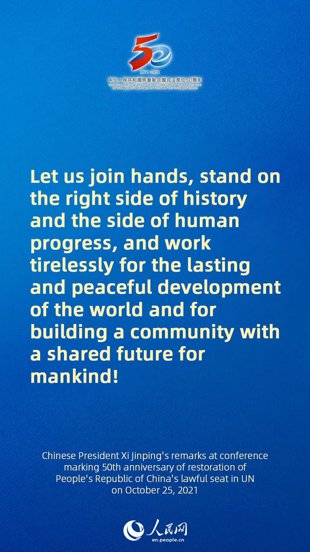 Highlights: Chinese President Xi Jinping's remarks at conference marking 50th anniversary of restoration of PRC's lawful seat in UN (13)