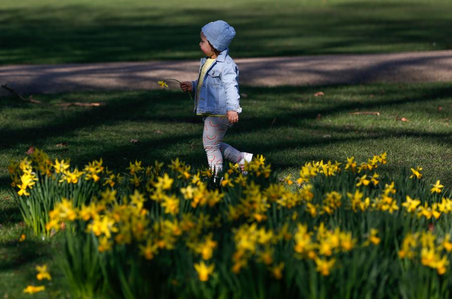 A child is seen at St James's Park in central London, Britain, Feb. 26, 2021. (Xinhua/Han Yan)