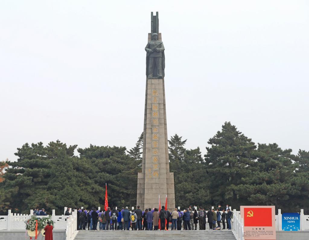 Family members of martyrs attend the commemoration ceremony at the Chinese People's Volunteers (CPV) martyrs' cemetery in Shenyang, northeast China's Liaoning Province, Oct. 25, 2021. A commemoration ceremony was held on Monday in memory of the 71th anniversary of the Chinese People's Volunteers (CPV) army entering the Democratic People's Republic of Korea (DPRK) in the War to Resist U.S. Aggression and Aid Korea. Representatives of CPV veterans and family members of CPV martyrs attended the ceremony. (Xinhua/Yang Qing)