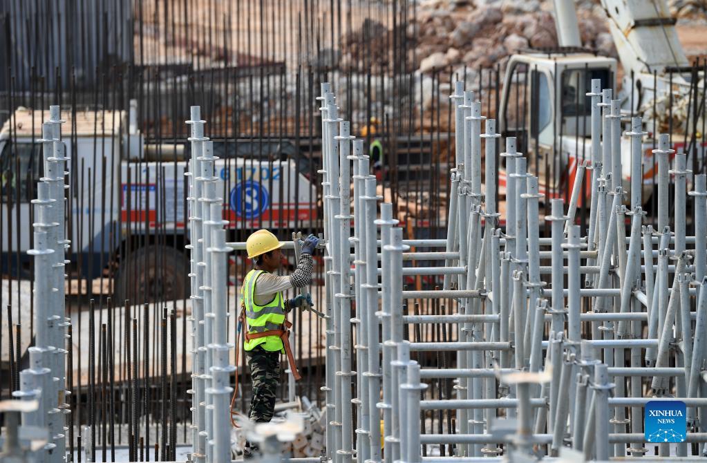Workers are seen at the construction site of Nanningbei Railway Station in Nanning, south China's Guangxi Zhuang Autonomous Region, Oct. 25, 2021. Construction is in full swing at the railway station as part of the Guiyang-Nanning high-speed railway project. With a length of 482 km, the railway line will cut travel time from Nanning to Guiyang from over 10 hours to 2 and a half hours. (Xinhua/Lu Boan)