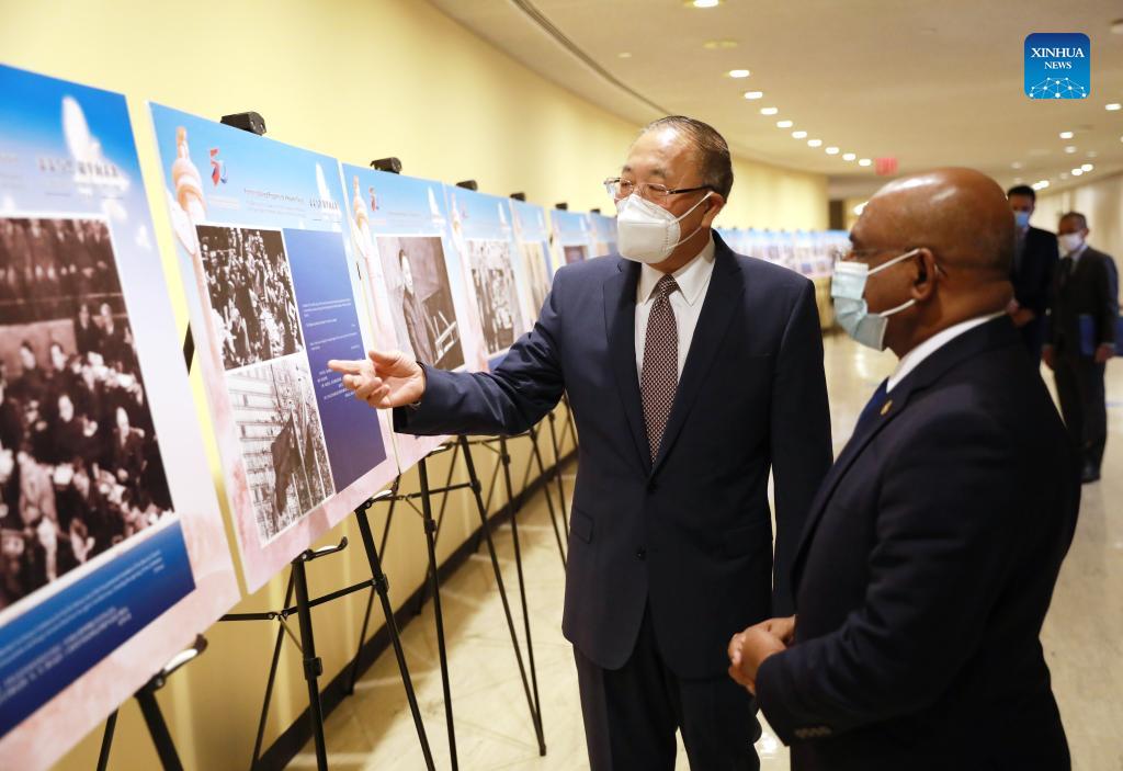 Zhang Jun, China's permanent representative to the United Nations, together with president of the 76th session of the UN General Assembly Abdulla Shahid, as well as diplomats and UN officials, visited the exhibition at UN Headquarters in New York.