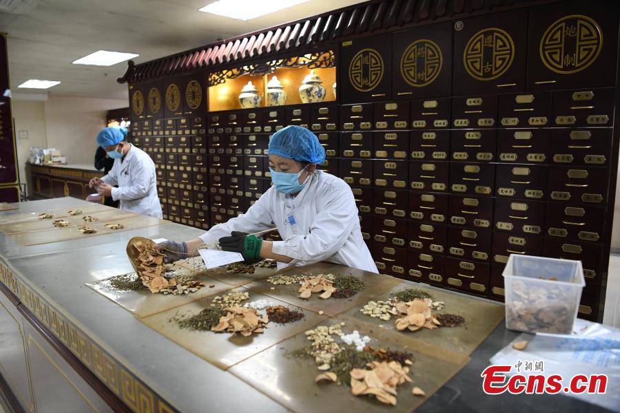 Pharmacists dispense Chinese herbal medicine at Gansu Provincial Hospital of Traditional Chinese Medicine (TCM) in Lanzhou, Northwest China's Gansu Province, Oct. 26, 2021. (Photo: China News Service/Zhang Wei)