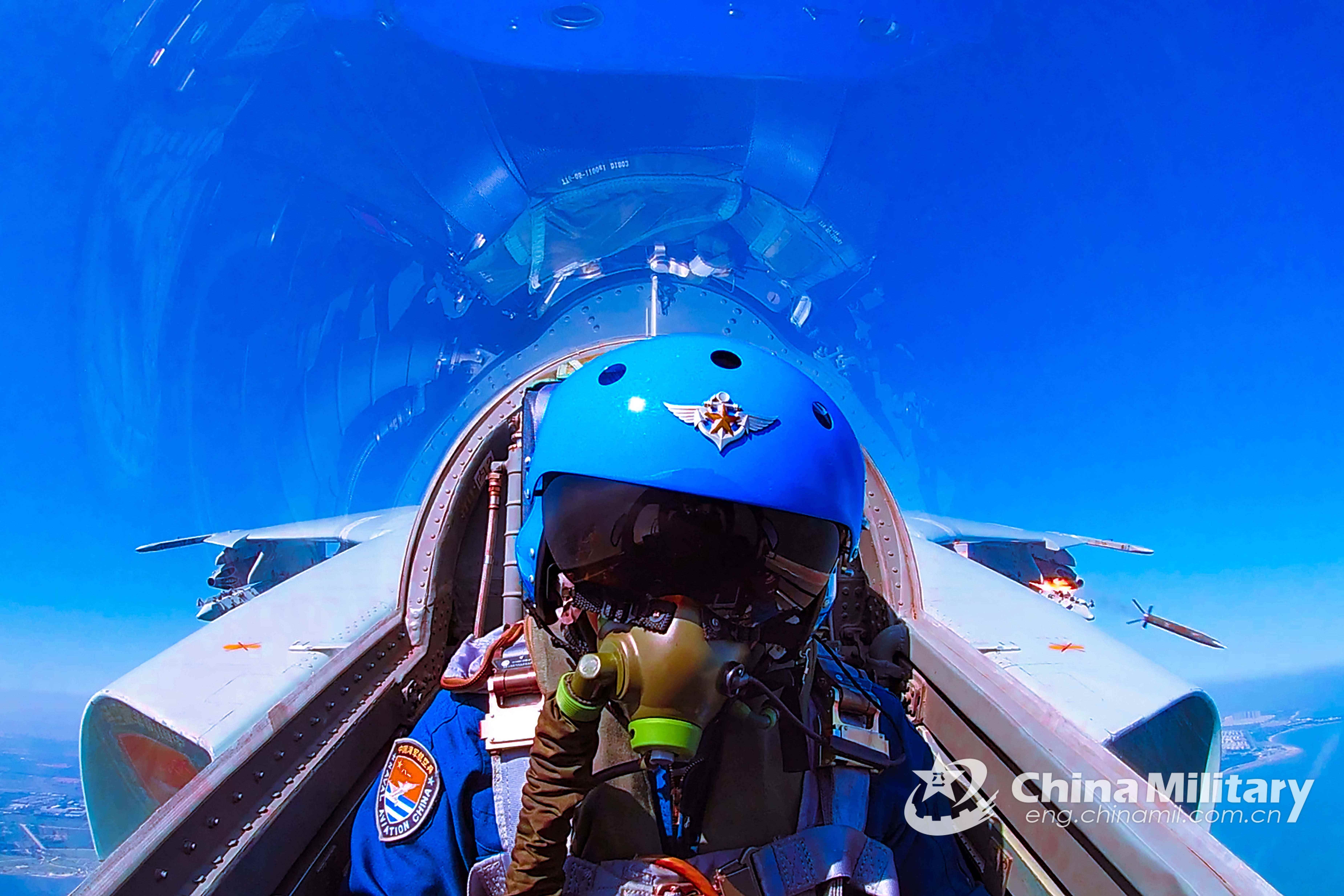 A pilot assigned to a naval aviation brigade under the PLA Northern Theater Command flies the fighter jet during an air-to-ground attack training exercise on September 7, 2021. (eng.chinamil.com.cn/Photo by Liu Xuhong)