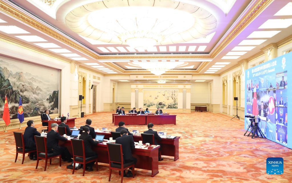 Chinese Premier Li Keqiang attends the 24th ASEAN Plus China, Japan and ROK Summit via video link, at the Great Hall of the People in Beijing, capital of China, Oct. 27, 2021. (Xinhua/Yao Dawei)