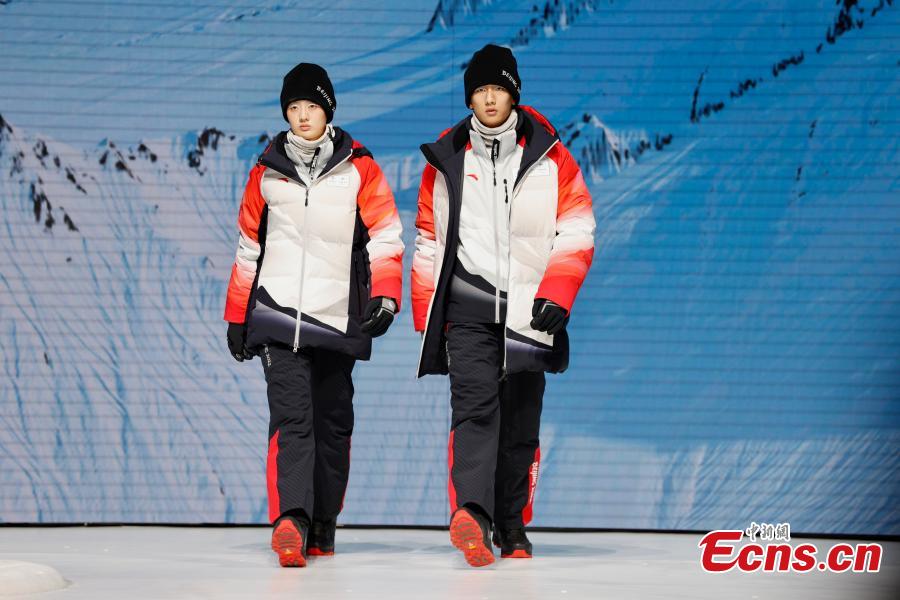 Models display the Beijing 2022 uniforms for staff on the occasion of the 100-day countdown to Beijing 2022 Winter Olympics in Beijing, capital of China, Oct. 27, 2021. (Photo: China News Service/Fu Tian)