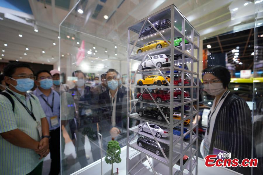 Professionals watch the automatic parking system at the International ICT Expo, Hong Kong, Oct.27, 2021. (Photo: China News Service/Zhang Wei)