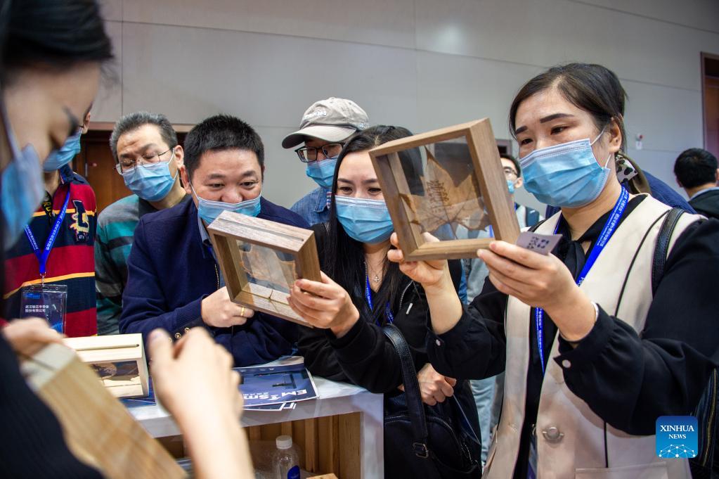 Visitors observe the exhibits during the 18th Optics Valley of China International Optoelectronic Exposition and Forum in Wuhan, central China's Hubei Province, Oct. 27, 2021. The expo and forum opened here on Wednesday. (Photo by Wu Zhizun/Xinhua)