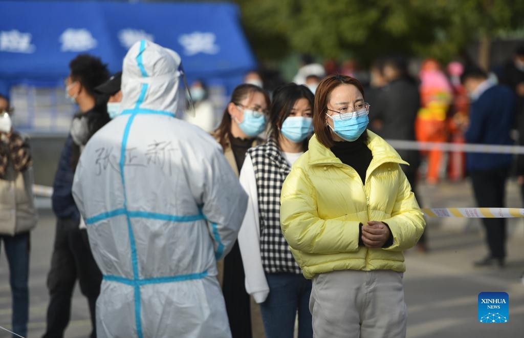 People queue up for nucleic acid testing in Xining, northwest China's Qinghai Province, Oct. 28, 2021. After Xining reported 3 new COVID-19 cases, local control of epidemic prevention has been strengthened. (Xinhua/Zhang Hongxiang)
