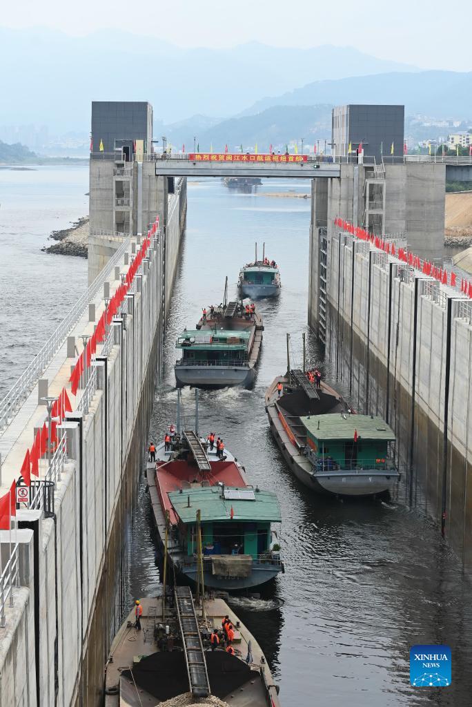 Boat pass through a water gate on Minjiang River in southeast China's Fujian Province, Oct. 28, 2021. (Xinhua/Lin Shanchuan)