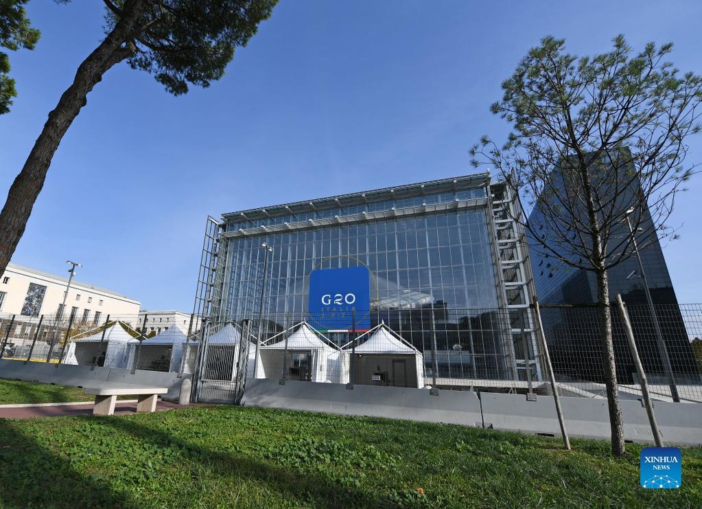 Photo taken on Oct. 28, 2021 shows La Nuvola Convention Center, main venue of the G20 Heads of State and Government Summit, in Rome, Italy. The summit of the Group of 20 (G20) leading economies is about to kick off in Italy's capital amid tight security measures and with a packed agenda. (Xinhua/Jin Mamengni)