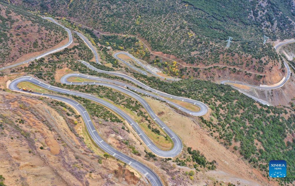 Aerial photo taken on Oct. 22, 2021 shows the winding road in Derong County, Tibetan Autonomous Prefecture of Garze, southwest China's Sichuan Province. (Xinhua/Liu Kun)